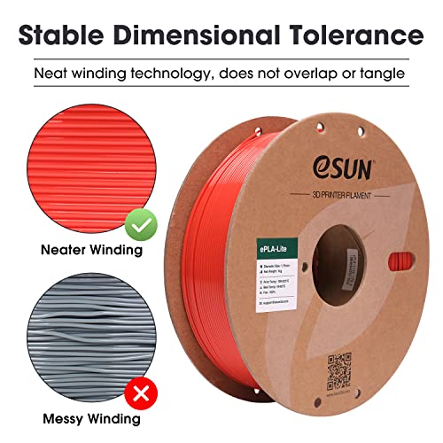 eSUN PLA Filament 1.75mm, Modifiziertes 3D Drucker Filament PLA, Maßgenauigkeit +/- 0.03mm, 1KG Spule (2.2 LBS) 3D Druck Filament für 3D Drucker (C-Rot, PLA Lite – 1KG)