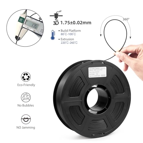 【Exzellente Schichthaftung】Carbonfaser-ABS-Filament 1.75mm hat die Eigenschaften von hoher Reinheit, geringer Schrumpfung und hoher Fließfähigkeit, und wird die Düse nicht verstopfen, ohne Problem der Schichttrennung. Die Haftung zwischen den Schichten und die Haftung im Bett sind ausgezeichnet, was einen stabilen Druck und hochwertige Druckergebnisse unter allen Umständen gewährleistet.