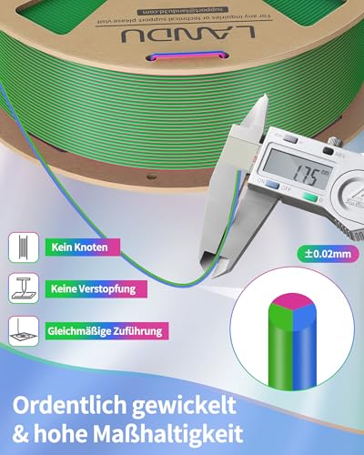 【𝐒𝐭𝐚𝐫𝐤𝐞 𝐇𝐚𝐟𝐭𝐮𝐧𝐠】 LANDU silk triple color filament 3d drucker filament bietet eine außergewöhnliche haftung, die es fest auf dem druckbett hält, ohne dass es sich hebt oder abblättert. dadurch können sie modelle in verschiedenen formen und größen sicher drucken, ohne sich sorgen über verzerrungen oder schäden machen zu müssen. erleben sie weniger druckfehler und erzielen sie mit jedem projekt eine glatte, präzise druckqualität.