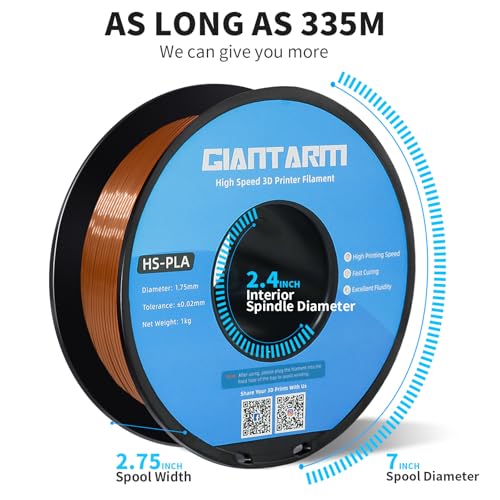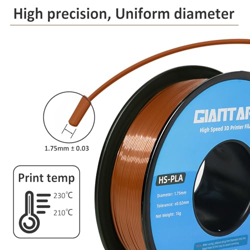 GIANTARM HS-PLA Filament 1,75 mm, PLA-Filament für Hochgeschwindigkeits-3D-Druck, schnelle Aushärtung, bessere Liquidität, 1 kg Braun