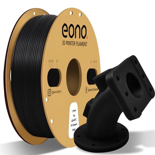 Eono PP Filament 1,75mm Polypropylen (+/- 0,03 mm) Halbflexibles Robustes Filament PP 3D Drucker 1 kg (2,2 Pfund) für 3D Druck,5pcs Build Sheet enthalten, Schwarz