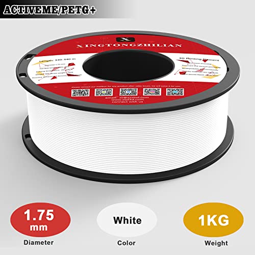 ACTIVEME PETG+ Filament 1.75mm, PETG+ 3D Drucker Filament, Maßgenauigkeit +/- 0.02mm ,3D Druck Filament Materialien für 3D Drucker, 1Kg/ 1 Spule Weiß