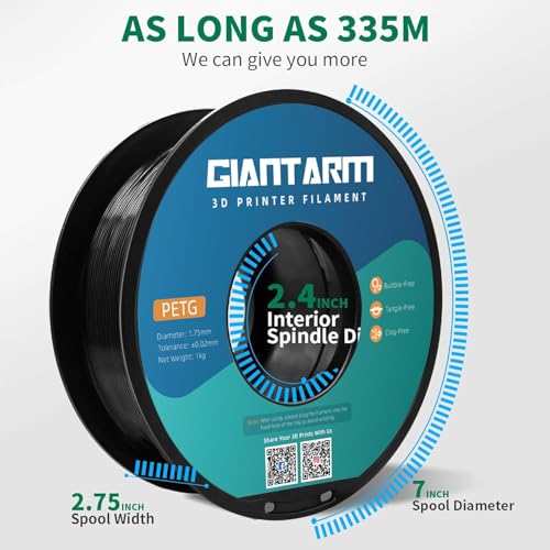 GIANTARM PETG Filament 1,75 mm schwarz für 3D-Drucker 1 kg Spool, PETG_(Polyethylenterephthalat_glykolmodifiziert)