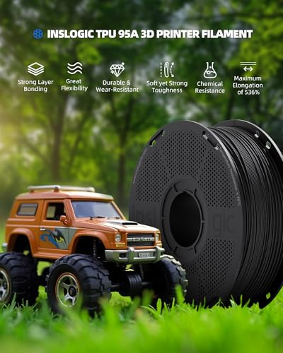 Inslogic TPU Filament 1.75mm, 95A Soft 3D Printer Filament, Flexible 3D Material 1kg Spool (2.2 lbs), Durable & Wear-Resistant, Dimensional Accuracy +/- 0.02 mm, Black