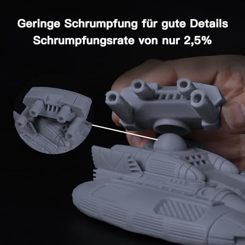 【Verwendungsempfehlung】 Um eine höhere Erfolgsrate beim Drucken zu gewährleisten, wird empfohlen, das Harz vor dem Drucken zu erhitzen. Härten Sie das Modell sofort nach dem Druck aus, um Verformungen zu vermeiden.