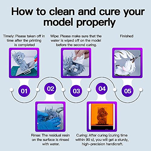 High efficiency and wide compatibility: The curing of the resin takes less time, is time-saving and the likelihood of successful printing is approx. 99.99% In addition, the resin is very suitable for LCD/DLP 3D printers and compatible with most 395-410nm SLA printers.