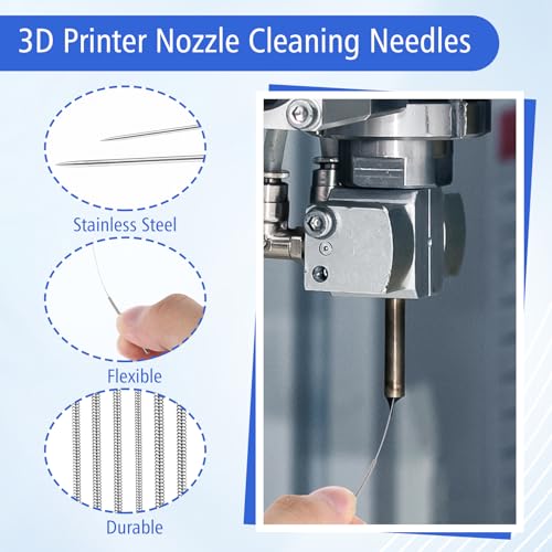 Flexibel und Biegsam: Die 3d drucker düse nadel ist flexibel und biegsam. Es kann leicht verbogen werden, aber nicht abbrechen. Da können Sie bei Düsen Reinigung die Düsen Reinigungsnadel 360 Grad verdrehen oder es nach irgendeinem Winkel verbiegen
