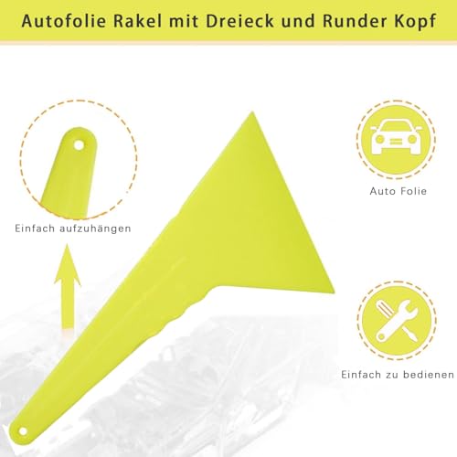 2 Stück Rakel für Folie, Gelb Flexibel Kunststoff Rakel, Folienrakel mit Dreieck und Runder Kopf, 3D Druck Kunststoff Autofolie Rakel, für Auto Folie, Fensterfolie, Sonnenschutzfolie