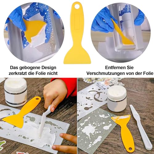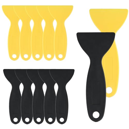 3D Druck Spachtel Kunststoff Messer, 12 Stück Kunststoff Spachtel Set, Luftblasenentferner Werkzeuge, Tapetenschaber Spachtelschaber, Kittmesser Werkzeug, Kunststoff Klingen für Füllen, Schwarz+Gelb