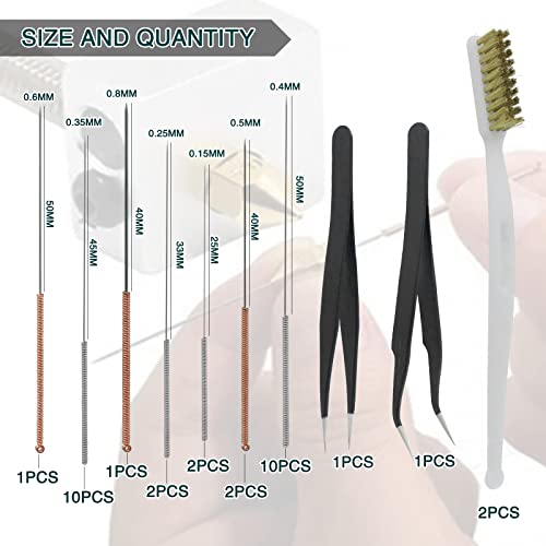 32 Stück 3D Drucker Düsenreinigungsnadeln Reinigungsnadeln, Düsenreiniger Nadeln, 3D Drucker Reinigungsset, mit Reinigungszahnbürsten aus Kupferdraht, Pinzette(0.15/0.25/0.35/0.4/0.5/0.6/0.8mm)