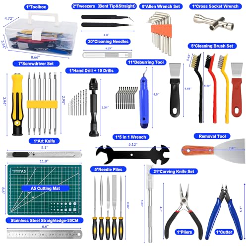 99 PCS 3D Drucker Zubehör,3D Druck Werkzeug Tool Kit,mit Zangen,Feilen,Pinzetten, Schnitzmesser,Reinigungsnadeln,Schlüssel,Schraubenschlüssel,für Reinigung Finishing Druck