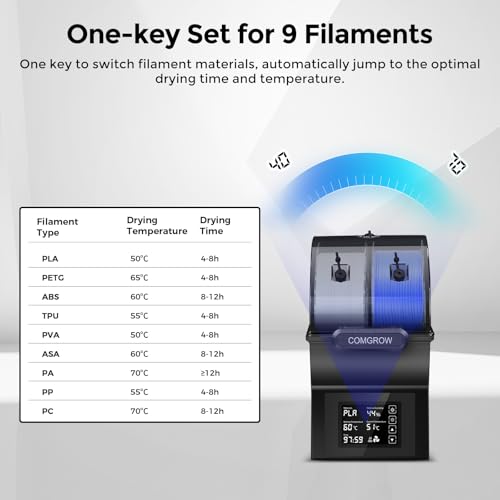 Comgrow 3D Drucker Filament Trockner Box SH02,3D Filament Speicher, hält Filamente trocken während des 3D Drucks, kompatibel mit 1.75mm/2.85mm PLA PETG PC ABS ASA, Filament Trockner, Spulenhalter