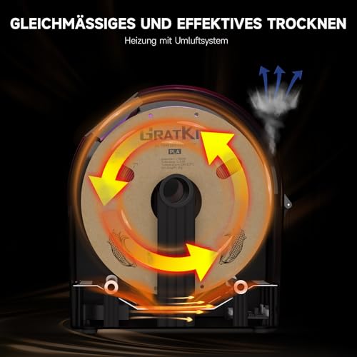【Effektives Trocknen】Verbessern Sie die Qualität Ihrer 3D-Druck und die Langlebigkeit des Filaments mit der Gratkit Firefly Filamenttrocknerbox; Diese trocknet Ihr Filament mit Umluft und intelligenter Temperatursteuerung effizienter und gleichmäßiger als andere Trockenboxen;