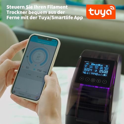 GratKit Filament Trockner Firefly V2.0, 3D Drucker Filament Dryer, Smartlife APP Gesteuerter, Lüfter für effektives Trocknen eingebaut, Trockenbox für PLA, PETG, ABS, Nylon, TPU, PC, Schwarz
