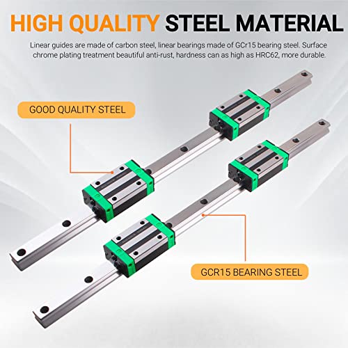 HGR15 Lineare Führungsschiene: Dieses lineare Schienenset enthält 2 Stücke 400mm lange HGR15 Schienenwellen und 4 HGH15CA Blöcke. Der Gleitblock wird in Verbindung mit der Schiene verwendet und das interne lineare Lager sorgt für ein sanftes Gleiten.