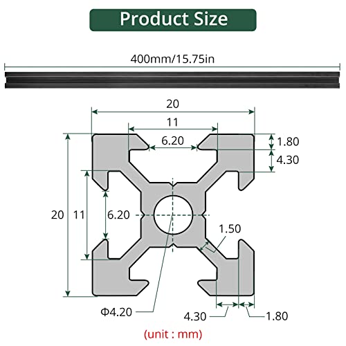 【Produkt Abmessung】 2020 V-Slot Europäische Standard-Aluminiumprofilgröße: Länge 400mm (15,75 Zoll) x Breite 20mm (0,8 Zoll) x Höhe 20mm (0,8 Zoll).