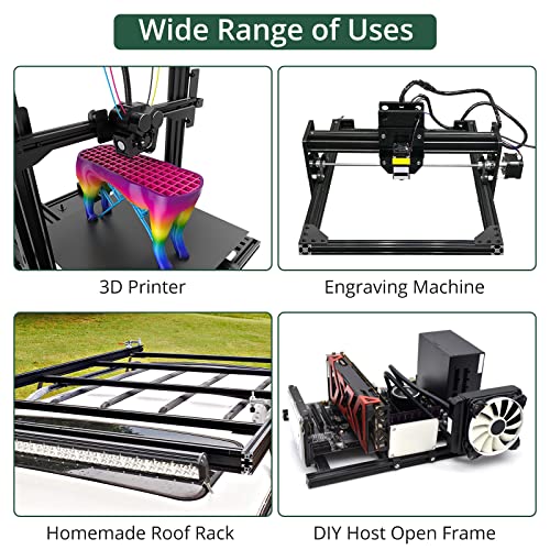 【Zuverlässig & Stabil】 JiGiU 2020 schwarze Extrusion Profil sind ein gutes Linearbewegungsmaterial mit hoher Festigkeit und einstellbar. Es kann an der Seite von 4 Nuten wie M3, M4, M5 Nutenstein und Riemenscheibe befestigt werden.