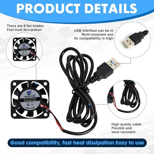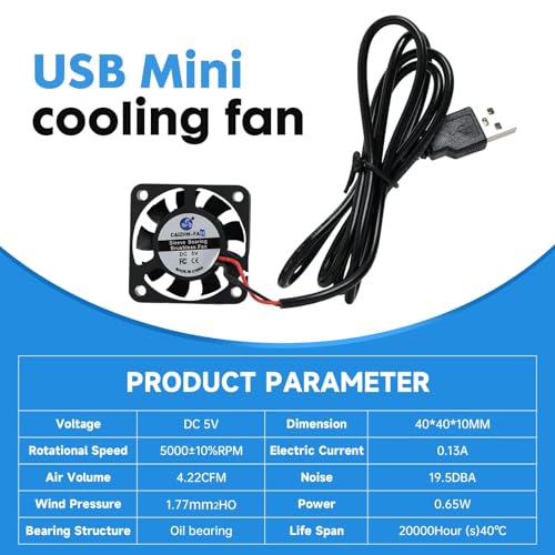 Hocheffiziente Kühlleistung: Diese beiden Mini-Kühlventilatoren mit den Maßen 40 x 40 x 10 mm und einer Spannung von DC 5V erzielen eine Luftstromrate von 4,2 CFM und eine Geschwindigkeit von 5000 U/min. Sie bieten damit eine überlegene Kühlung für eine Vielzahl von elektronischen Geräten.