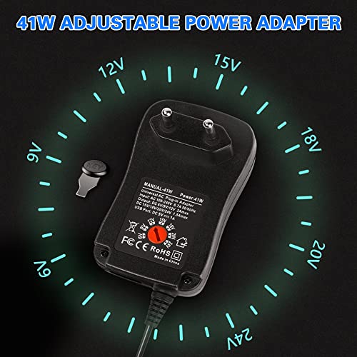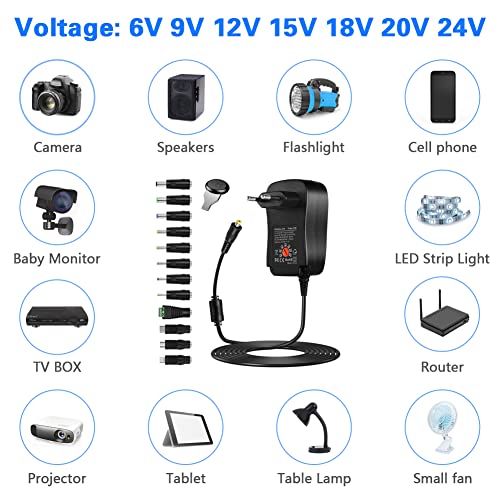 【All-in-One-Netzteil】 41-W-EU-Netzteil, der einstellbare Spannungsbereich beträgt 6 V bis 24 V und der maximale Strom beträgt 2 A, was Ihren verschiedenen Anforderungen gerecht werden kann. Geeignet für verschiedene DC-Haushaltsgeräte: Router, Lautsprecher, Türklingeln, Tablets, LED-Lichtleisten, Aquarien, CCTV-Kamerasysteme, USB-Ladekameras, DIY-Anschlüsse usw.