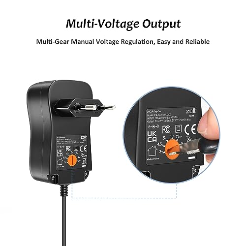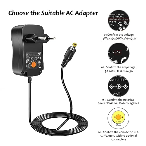 Zolt 36W Universal Netzteil AC zu DC 3V 4.5V 5V 6V 7.5V 9V 12V 3A Netzteil Adapter mit 10 DC-Steckverbinder für Haushaltselektronik, 3000mA Max.