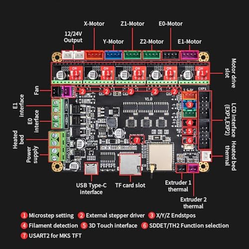 3D-Drucker-Steuerplatine, MKS TinyBee V1.0 3D-Drucker-Steuerplatine mit ESP32 WiFi2.0-kompatiblem LCD2004/12864/TFT, Circboard Prototyping Boards