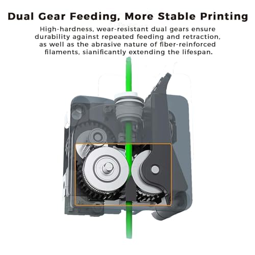 Vielseitige Filamentkompatibilität: Ob PLA, ABS, PETG oder TPU – das K2 Plus Extruder Kit bewältigt alles mit Leichtigkeit. Der Doppelgetriebemechanismus sorgt für starke Traktion und gewährleistet eine reibungslose Zuführung einer Vielzahl von Filamenten