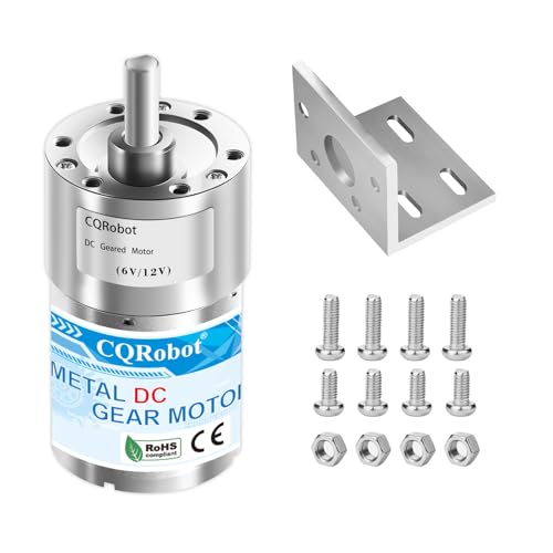 CQRobot 70:1 Metal DC Geared-Down Motor 37Dx54.8L mm 6V or 12V with Mounting Bracket Kit. 6V-5W-75RPM-15 kg.cm(208 oz.in), 12V-10W-150RPM-27 kg.cm(375 oz.in), D-Shaped Output Shaft Long 16mm.