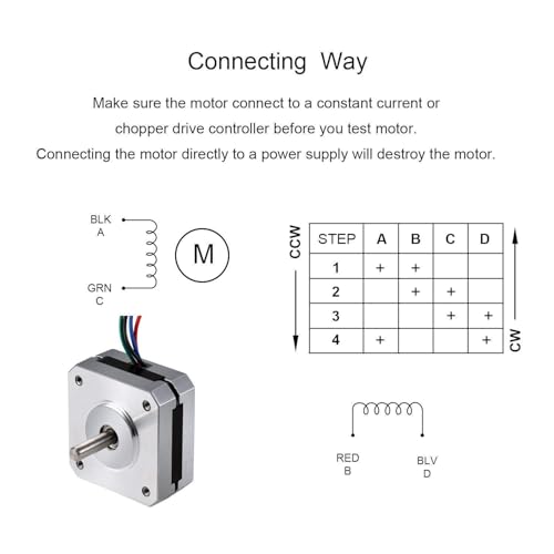Stellen Sie sicher, dass der Motor an einen Konstantstrom- oder Chopper-Antriebsregler angeschlossen ist, bevor Sie den Motor testen Wenn Sie den Motor direkt an eine Stromversorgung anschließen, wird der Motor zerstört.