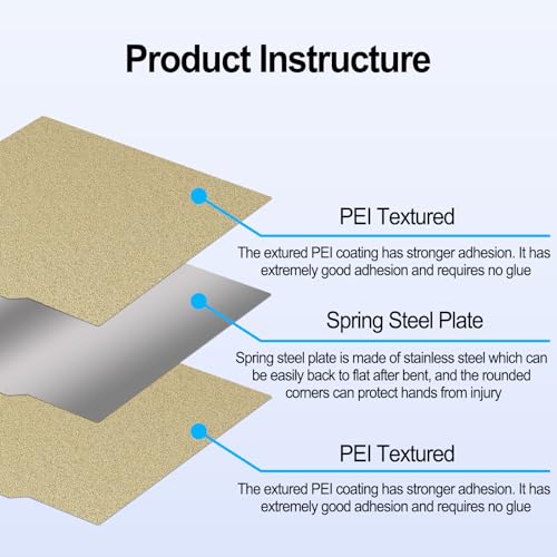 Erleben Sie unsere vielseitige doppelseitige PEI+PEI-Druckplattform! Die beidseitige Pulverbeschichtung aus gefrostetem PEI verbessert die Haftung und reduziert Verformungen. Die Federstahlplatte garantiert eine einfache Entfernung und Haltbarkeit und ergänzt perfekt den flexiblen Magnetaufkleber, der Ihre Drucke während des gesamten Druckvorgangs sicher hält.
