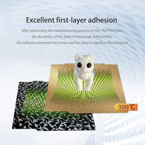 【Gute Haftung】Das Modell kann fest auf der Oberfläche des Druckbetts befestigt werden. Bitte lassen Sie die Bauplatte abkühlen, bevor Sie das Modell entfernen, um eine Beschädigung der Beschichtung zu vermeiden.